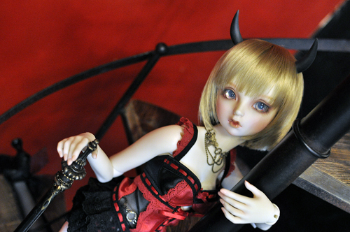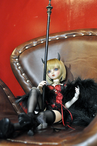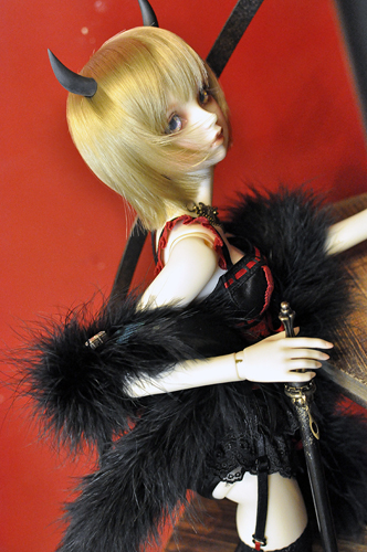 この為にわざわざ悪魔のシッポを作ったんだけど、上手くフレームに納められなくて、それが残念。シッポに針金まで仕込んで、自在に曲がるようになってるのに…!