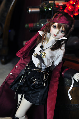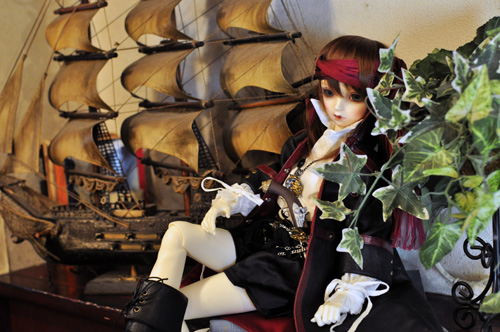 スタジオが元酒場で、船の模型があったりしたので、着替え用に海賊服を持って行きました。女の子のこういう格好大好きだ。ドレスより断然好きだ。